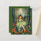 A young girl in a green dress swings amidst a vibrant floral forest, with her eyes closed under the soft glow of a full moon. The scene is whimsical and dreamlike, filled with colorful flowers and lush greenery. Digital Art Photoshop CS6
