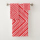 A symmetrical pattern featuring red, orange, and p bath towel set
