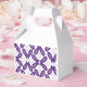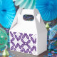 A symmetrical pattern featuring white and purple m favor boxes