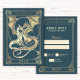 Introducing our A Tale of Dragon Love RSVP card - teal and gold version, where the magical realms of tarot and the mythical world of dragons come together seamlessly. This mystical, mythical, and romantic theme showcases two dragons in love, echoing the symbolism of the tarot card "The Lovers". Ideal for weddings with a mystical or medieval theme, for tarot enthusiasts, Game of Thrones fans, and dragon aficionados alike. The inclusion of monograms enhances the invitation's charm. The wording is completely editable. You can change size, color, font, position in page.