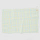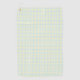 A tea towel with a grid pattern in light blue and yellow. Shown from the front and horizontal side, it features a corner loop for hanging.