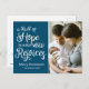 Personalize this Christmas postcard featuring the words "A thrill of hope the weary world rejoices" on a blue colorway. Customize with a photo of baby, family name, and birth announcement details. Include baby's birth date, stats, and your return address of easy mailing. WIsh your family and friends "Merry Christmas" and introduce baby to share hope and joy.