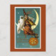 In this vintage image we have a witch with her rather large, white owl sitting on a crescent moon that has been hung with a glowing Jack-O-Lantern.