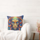 A throw pillow cushion for the home. This pillow has been created for the rich and vibrant colors and the idea of a fantasy worlds to be able to be more abstract and be more creative. An intese look from the being in the portrait is very strong . A great present for a space or fantasy friend or family.