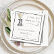 A Tini Bit Closer to I Do Heart Accent Dirty Martini Black and White Bridal Shower Napkins – Martini Themed Bridal Shower Decoration Ideas: A beautiful, unique and elegant personalized bridal shower napkins that blends modern style with timeless sophistication. Featuring a dirty martini with two olives and an elegant coquette black bow against a clean white background, accented with a heart design. The combination of graceful script calligraphy and sleek block font creates a chic, refined look. Set the stage for an unforgettable martini themed bridal shower celebration with loved ones as they shower the bride-to-be. Customize these bridal shower napkins with your event details. Perfect for martini lovers or for a chic and elegant bridal shower theme.