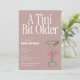 Retro style birthday invite features the funny drink themed quote A Tini Bit Older.