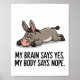 A tired donkey with the text my brain says yes my body says nope