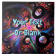 A multi-colored fractal image with many negative-space toroids on a starry background. Customize by adding your own text.