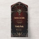 A touch of Gothic magic, Eternal love in the shadow of elegance. a striking, dark, gothic-style frame adorned with ornate metallic flourishes and delicate embellishments. A large spider's web hangs at the top of the frame, elegantly spanning the centerpiece of the design. In the center of the web, a small spider swings gently back and forth, giving the image a subtle dynamic.