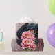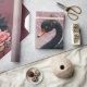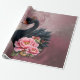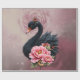 A touch of rose and swan's glow. This enchanting design depicts an elegant black swan, immediately eye-catching with its smooth, dark plumage and bright orange beak. A delicate floral arrangement perches atop its head, emphasizing its regal grace. Delicate pink blossoms, presumably peonies, are artfully grouped around the swan's body, lending the image a romantic and elegant touch. The background consists of a gentle gradient in shades of pink, immersing the scene in a dreamy, almost magical atmosphere. The interplay of the jet-black feathers, the vibrant flowers, and the soft gradient creates a harmonious overall image full of grace and love.