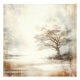A solitary tree stands enveloped in a misty, ethereal landscape, evoking a sense of tranquility and timelessness. Subtle earthy tones and delicate patterns blend seamlessly with the soft, foggy background, creating a dreamlike atmosphere.