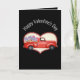 Don't forget your sweetheart on Valentine's Day. Give her a truckload of flowers. This design features a red, vintage pickup truck full of blue and pink flowers. Behind the truck there is a white heart. The curved text at the top reads, "Happy Valentine's Day". All text can be customized.