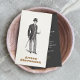 Vintage Victorian etching of a gentleman in formal attire in bowler hat holding a cigarette and cane. Perfect calling card. Subtle linen background look.