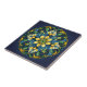 The overall composition exudes a sense of timeless elegance, the vibrant colors contrasting harmoniously against the deep blue canvas. This ceramic tile is a testament to the craftsmanship and artistry that goes into creating these unique pieces, and it would undoubtedly be a striking addition to any space, whether as a standalone art piece or as part of a larger mosaic.