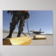 A US Air Force crew chief waits to chalk the flight of an aircraft featured with aircraft.