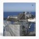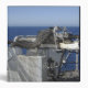 A US Navy Gunner's Mate firing a 50-caliber machine gun during weapons training aboard USS Boxer featured with boats.