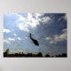 A US Navy HH-60 Seahawk stirs up debris while taking off featured with destruction.