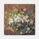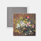 This work is romantic with a traditional subject of still life. Blooming flowers in a pot with different shapes against the dark brown background give a pleasant association of lively spring scenery in the garden.