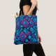 A vibrant and abstract pattern featuring various geometric shapes and swirling designs in shades of blue, purple, and pink. The composition is visually striking and has a psychedelic, kaleidoscopic feel to it