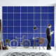 This modern and chic design features a vibrant blue backdrop with a clean white square positioned centrally, creating a sense of simplicity and clarity. The contrasting colors are eye-catching and sleek, making it a perfect addition to any minimalist-inspired space.
