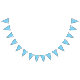 A vibrant blue fabric featuring intricate patterns bunting flags