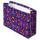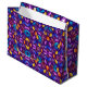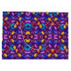 A vibrant gift bag with colorful butterfly patterns in purple, yellow, and blue hues. It has white rope handles and a lively, festive feel.