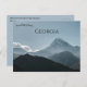 This postcard features a view of Stepantsminda (formerly Kazbegi), Georgia. According to georgia.travel, "Stepantsminda stands out on the map of Georgia, not just for being just eleven kilometres from the northern border of the country, but also due to the fact that one of the oldest crossroads between Europe and Asia passes through the town. It is not known when Stepantsminda was founded, but a treasure hoard from the 6th-5th centuries BCE was discovered here." Photo credit: Slava Auchynnikau, 2024.