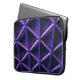 A violet ceiling with a criss-cross pattern; a blu laptop sleeve