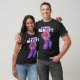 My 11 yo wore adult XL (5’7” 165#). The 8yo is small framed. She wore adult small and tied it in the back. Grandma wore adult large with long sleeve shirt underneath. Tall girl adult medium. Dark haired male adult large. Good quality dark Heather gray, Gildan brand shirt. -it was next up from basic choice and cost about $20 per shirt. Not too thick or thin. Washed and dried well, no major shrinkage. Not see-through. Can wear a bra under it fine. Screen print is just as shown and well done, front and back.
