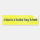 A Waist Is A Terrible Thing To Mind Bumper Sticker
