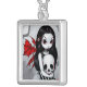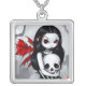 A slightly gothic scene - nearly monochromatic - a fairy walking through the cemetery clutching a big skull! My own original acrylic painting. ***Remember, you can choose either ROUND or SQUARE necklace fittings!***