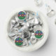 Stoke the imagination of your wee one with this fantasy-themed design. Four squares in rich blue, green, purple and red are framed by gold and silver stitch marks and decorated with fun, stylized icons that would be at home in any fantasy setting, including a star-tipped magic wand, castle tower, jewel-adorned crown, and a blue hilted sword. Customize the message on the green overlay panel with your soon-to-be little one's gender or a message of your choice to create a truly unique treat to serve at your baby shower. These can also make a great way to announce the new baby to your family and friends. This candy will match with any other A Wee One's Fantasy Quilt product so that you can easily make your event as coordinated as you desire.