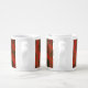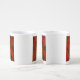 a white and brown striped wallpaper with a pattern coffee mug set