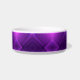 A white bowl with a vibrant purple geometric pattern featuring overlapping squares is centered against a plain background, creating a modern and elegant look.