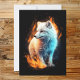 A white fiery fox on a black background, a perfect striking statement card for anyone who loves fixes, in particular arctic foxes.