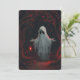 A white ghost holding a red lantern with red leave invitation