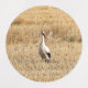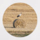 A white stork ( Ciconia ciconia ) stands between hay bale in a harvested field