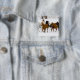 A winter scenic of running horses pinback button