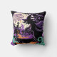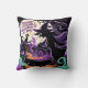 A mysterious witch stirs her vibrant cauldron in the moonlight, accompanied by a curious black cat. Wisps of colorful steam dance around them, hinting at magical adventures.
