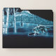 A lone wolf (Canis lupus) traverses a snowy landscape in this simple, dark, stylized image. Moonlight reflects off the snow and birch trees. Add your own text.
