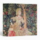 French School's A Woman Spinning, detail from 'Le Travail de la Laine', part of 'La Noble Pastorale', c.1500 (wool & silk tapestry) located at the Louvre, Paris, France. The A Woman Spinning, detail from 'Le Travail de la Laine', part of 'La Noble Pastorale', c.1500 (wool & silk tapestry) was created around the 16th century.