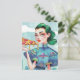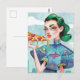 A Woman with a Slice of Pizza UFO shirt Postcard