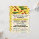 A peri-peri, friggitello, habanero, rocoto, jwala, and shishito chili pepper are decorated with patterns from the region where they were originally cultivated or are commonly eaten and sit on a yellow background with patterns inspired by tattoos worn by native peoples in the Amazon to create a fun repeating pattern that reflects the origins and spread of these tasty, and often spicy fruits. A lighter section on the lower portion of the card has sample text that you can customize to create a personalized invite for your event.