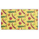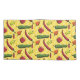 A peri-peri, friggitello, habanero, rocoto, jwala, and shishito chili pepper are decorated with patterns from the region where they were originally cultivated or are commonly eaten and sit on a yellow background with patterns inspired by tattoos worn by native peoples in the Amazon to create a fun repeating pattern that reflects the origins and spread of these tasty, and often spicy fruits.