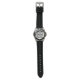 A wristwatch featuring a black band