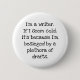 This funny little button is perfect for the writer when attending a writing workshop or conference. Wear it to your writers group or a book signing event. It'll get you a lot of attention and chuckles.