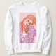 a young blonde girl. an illustration depicting a young blonde girl sitting in a comfortable pose in pink pajamas with stars.
