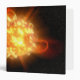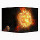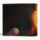 Illustration of a young red dwarf stripping the atmosphere from an orbiting planet. Violent outbursts of seething gas from young red dwarf stars may make conditions uninhabitable on fledgling planets.