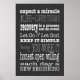 Text (typography) based design on a customizable background color. Features sayings "expect a miracle", "living life on life's terms", "recovery is a process not an event", "let go and let god", keep it simple" "it works if you work it", "honest open willing", each day a new beginning". Copyright Kate McKenna 2014. Illegal to use without permission.