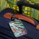 Beautiful abalone seashell designed luggage tag. Name and address on the back.